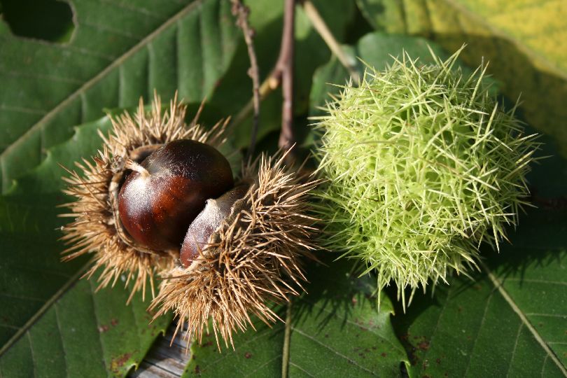 Die Edelkastanie ist ein sommergrüner Baum und bildet stärkereiche Nussfrüchte.