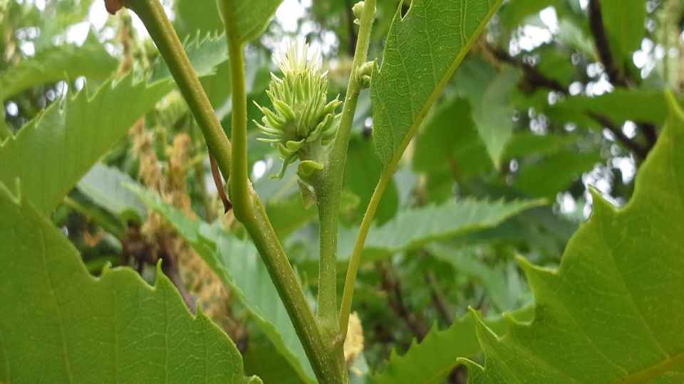 Charakteristisch für die Esskastanie ist der sehr stachelige Igel, die äußere Hülle die die eigentlich Frucht schützt du sich erst öffnet wenn die Kastanie reif ist.